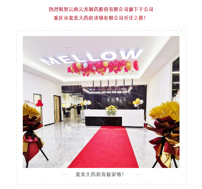 2018年9月,作為云龍制藥戰略轉型的重要里程碑之一,旗下重慶市蠻龍大藥房連鎖有限公司(以下簡稱重慶蠻龍大藥房)正式成立。